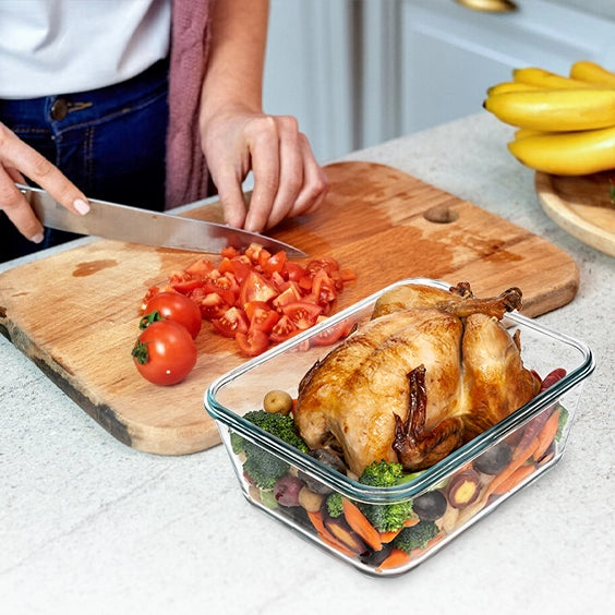 Bid farewell to spills with this easily sealed, airtight, and spill-proof square glass food container. Transition seamlessly from refrigerator to microwave or oven, and even cook directly in the container. The square shape minimizes dead space in the refrigerator, optimizing storage efficiency. Embrace the freedom of versatile use with reusable borosilicate glass. This container excels in the refrigerator, freezer, microwave, and dishwasher (top shelf recommended).